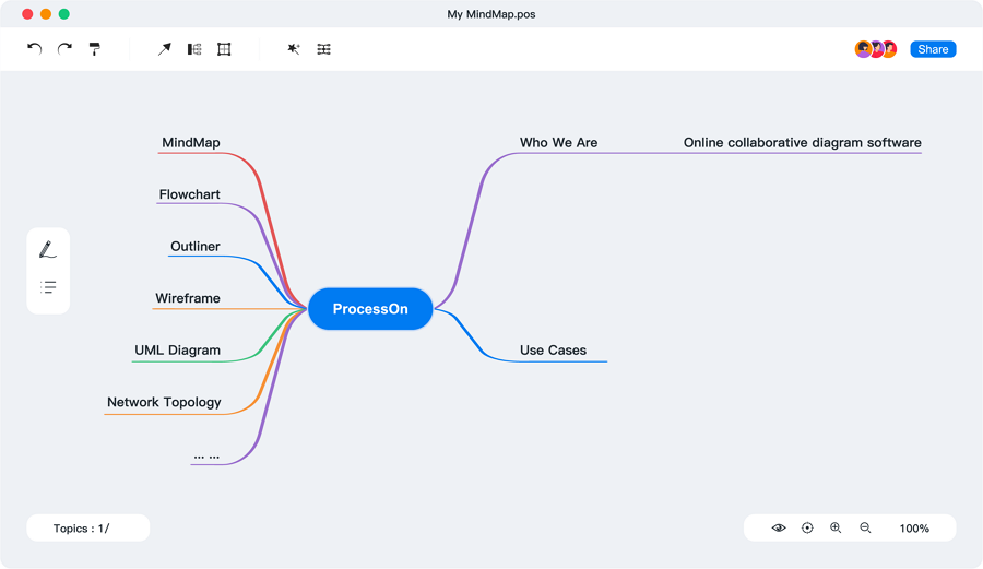 ProcessOn is a free, web-based diagramming platform offering flowcharts, mind maps, and UML diagrams. It does not feature AI-powered PDF parsing but is simple and intuitive for manual diagram creation after content extraction. ProcessOn supports team collaboration and a large template library, making it a solid budget-friendly option.