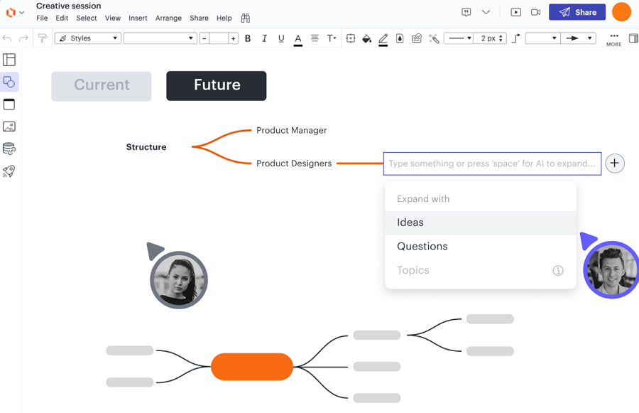 Modern tools like Fluig allow you to chat with AI or give natural prompts to refine or expand your diagrams. Tools with built-in AI agents can help you reorganize flows, suggest improvements, or convert to other diagram types like mind maps or trees.