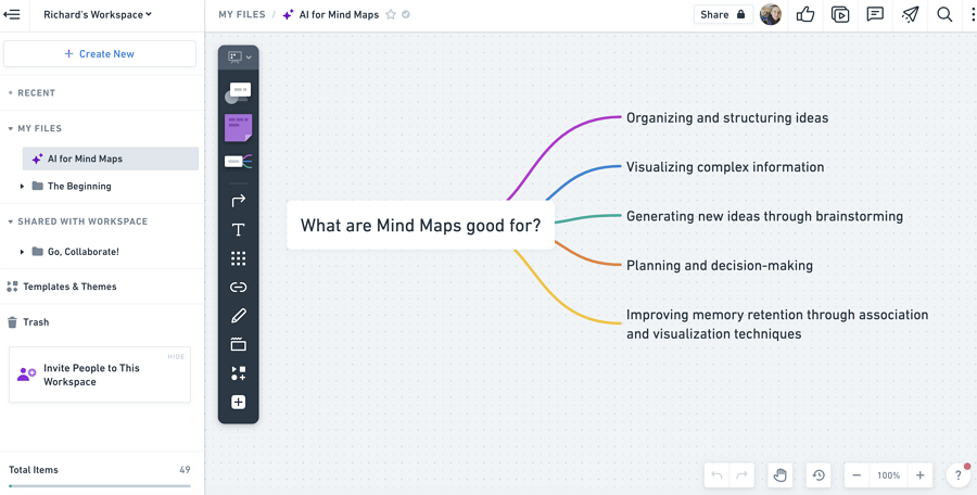 MindMeister is a leading mind mapping tool that excels at visualizing ideas and concepts in a hierarchical manner. While it doesn’t directly convert PDFs to flowcharts, when combined with AI-based text extraction tools, it can quickly transform PDF content into structured mind maps. Its intuitive drag-and-drop interface and real-time collaboration make it ideal for brainstorming and organizing complex information visually.