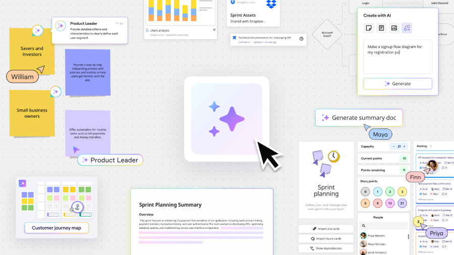 Miro is a popular digital whiteboard platform that has introduced AI capabilities to enhance brainstorming and diagramming. While Miro doesn’t directly convert PDFs to flowcharts, users can paste content or upload screenshots and use AI to generate and organize flowcharts. Miro shines in collaborative environments, supporting unlimited users and integrations with many tools.